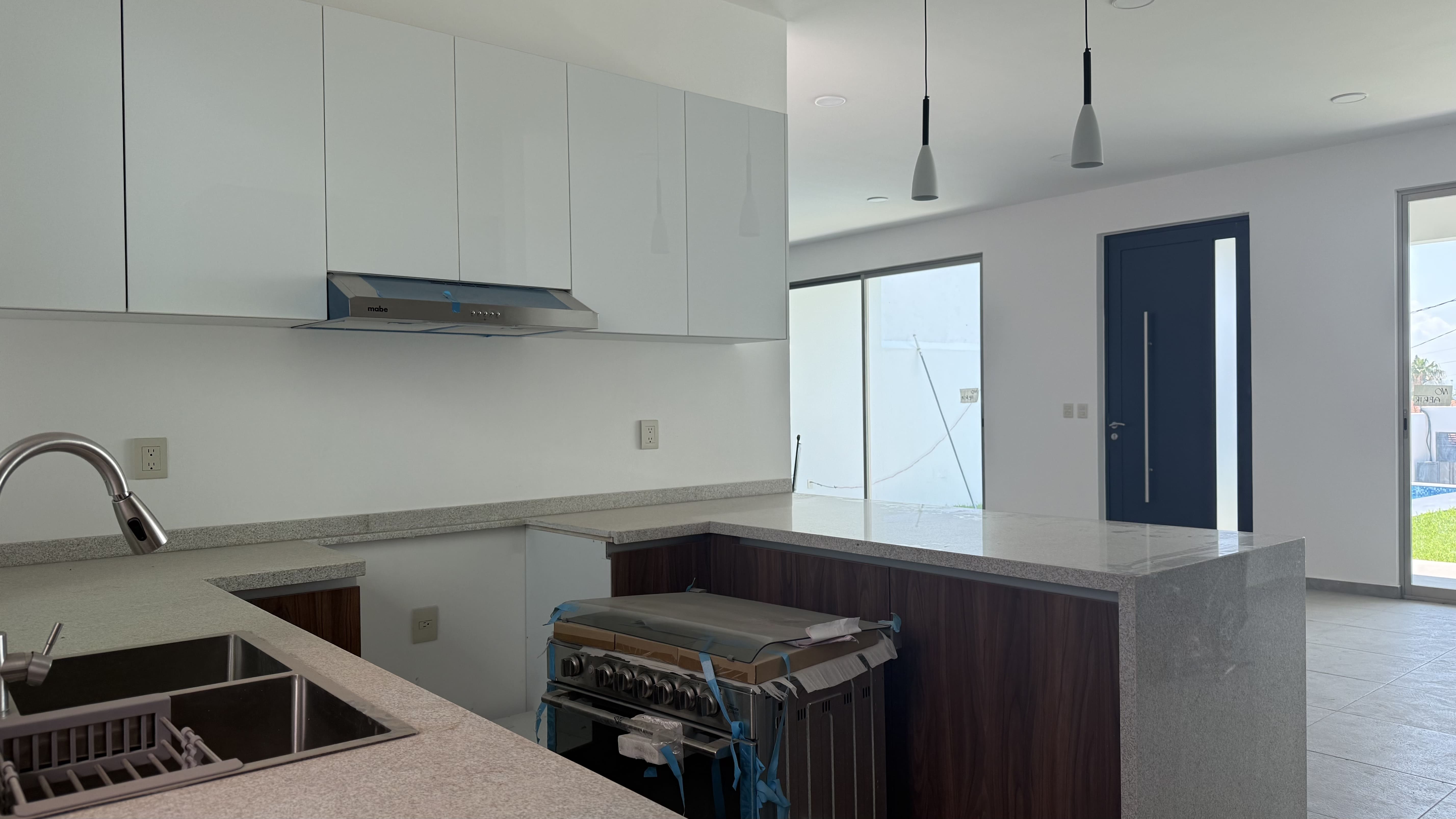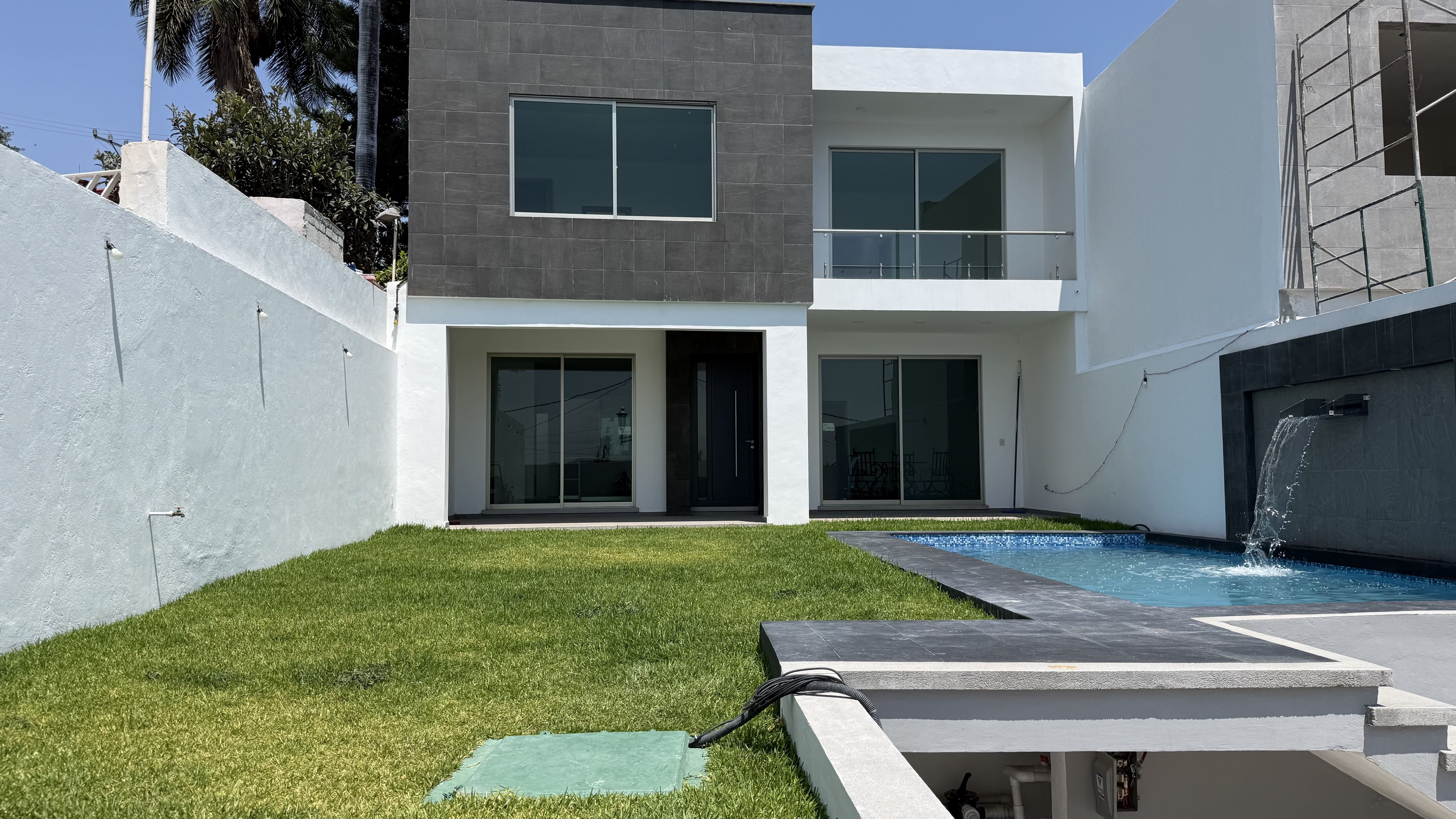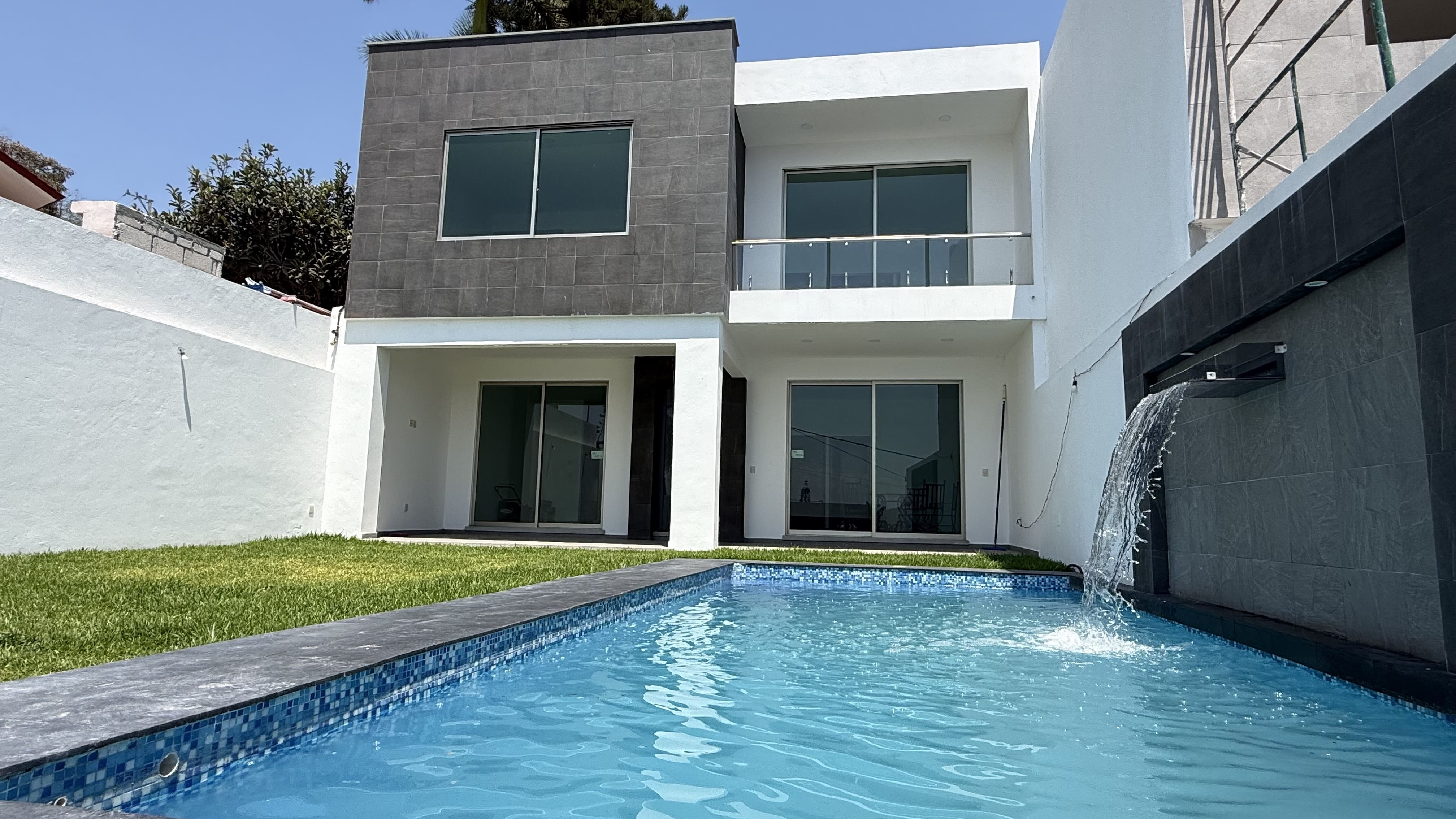 Estrene casa moderna en privada con porton electrico, cocina de granito alberca con cascada, balcon en la recamara principal