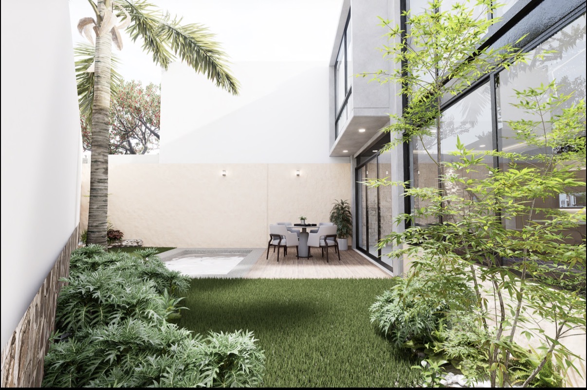 casa moderna en privada de 5 casas, instalaciones subterraneas de la privada, sala doble altura, recamara principal con baño vestidor, estacionamiento techado, fachadas con vigas de acero, concreto aparente, baños con mármol y, canceles cristal templado, Cocina con granito, Cisterna agua potable 9,000.00 litros, Tanque estacionario para gas de 300 litros, preparacion para salidas de aire acondicionado en recamaras, y sala tv, jacuzzi equipado, Biodigestor para tratamiento de aguas negras, hay, drenaje en fraccionamiento
