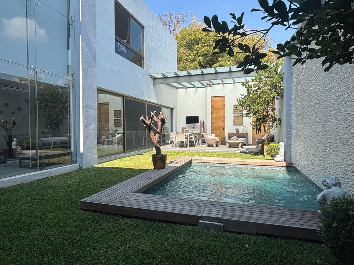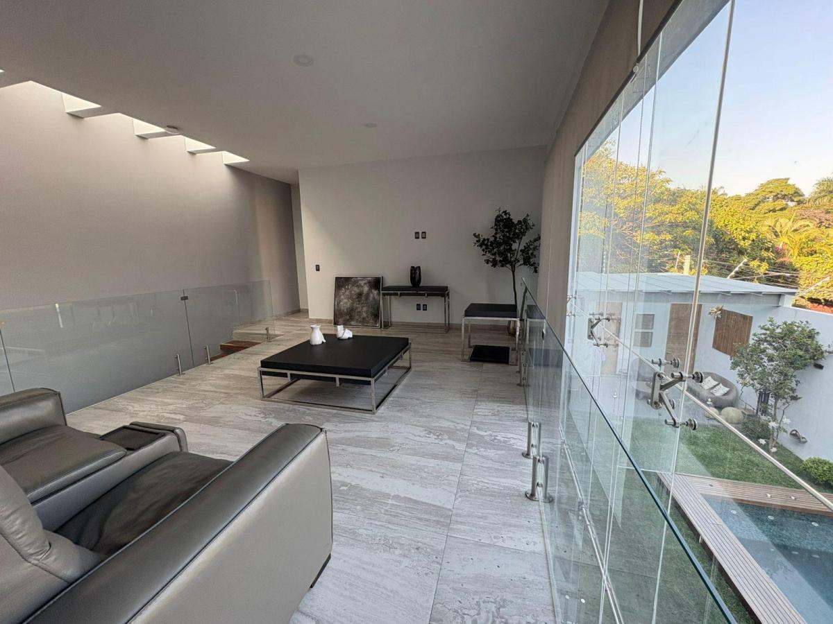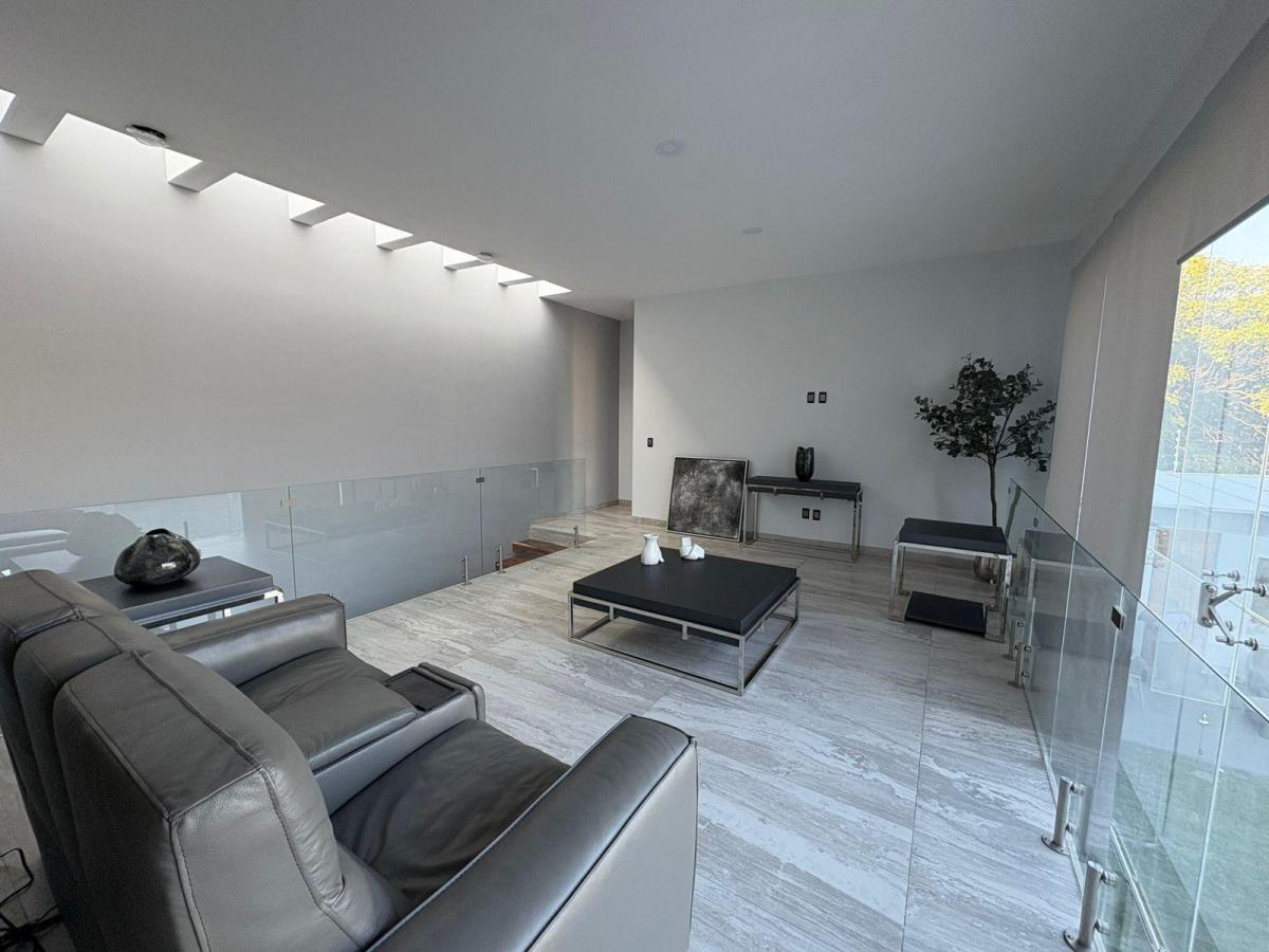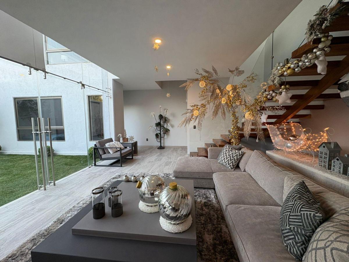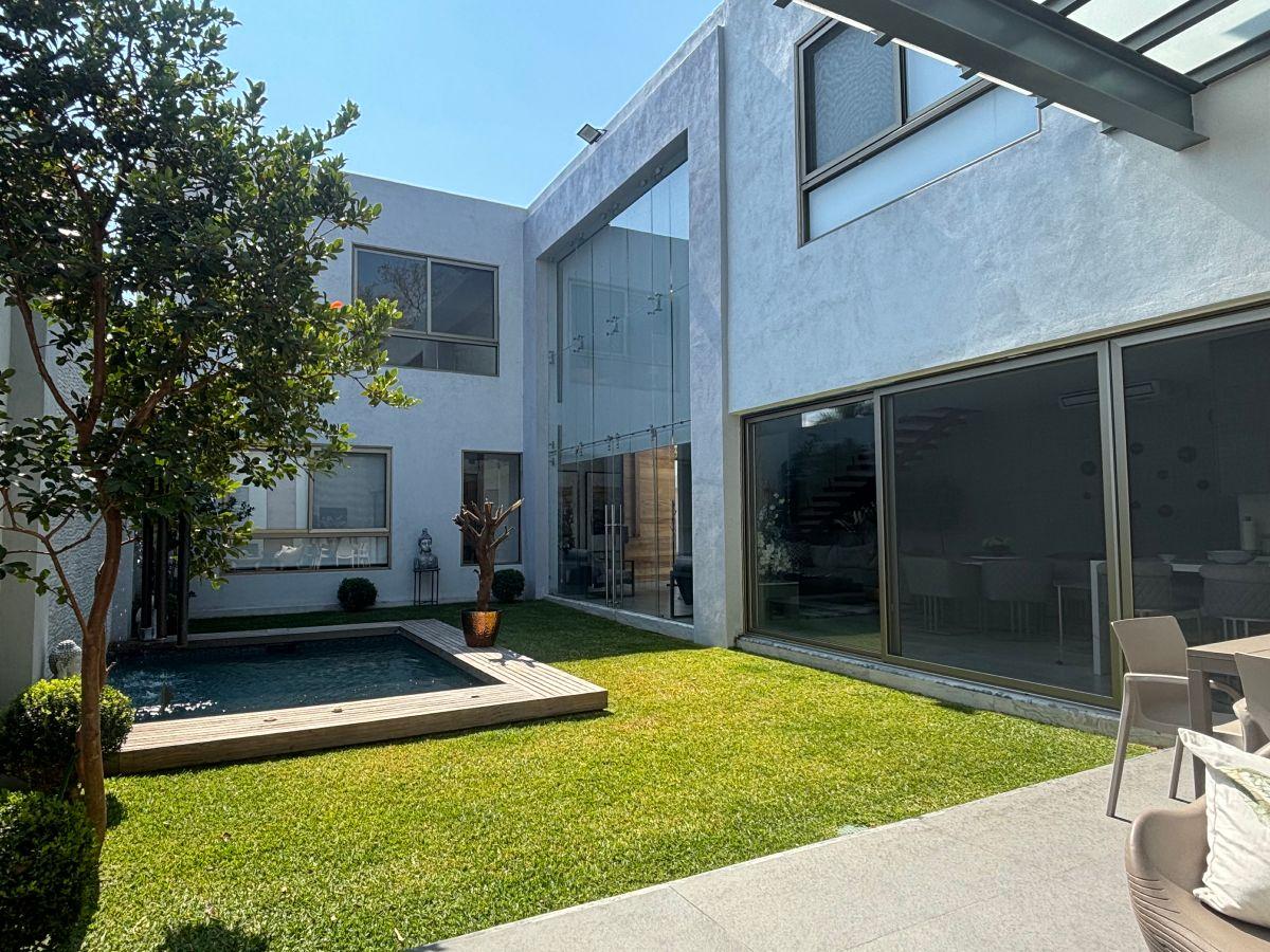 Puerta de Teca de doble altura, amplio vestíbulo con mármol, ventanales con vista al jardin, Alberca climatizada con cascada, Cocina equipada con isla de mármol. Recámara en planta baja, con baño completo y clóset. Recámaras en planta alta con walking closet y baños de lujo. Recámara principal con terraza, riego por aspersion, cisterna 16000 litros, aire acondicionado en recamaras y sala comedor, cerca electrificada, camaras de seguridad,