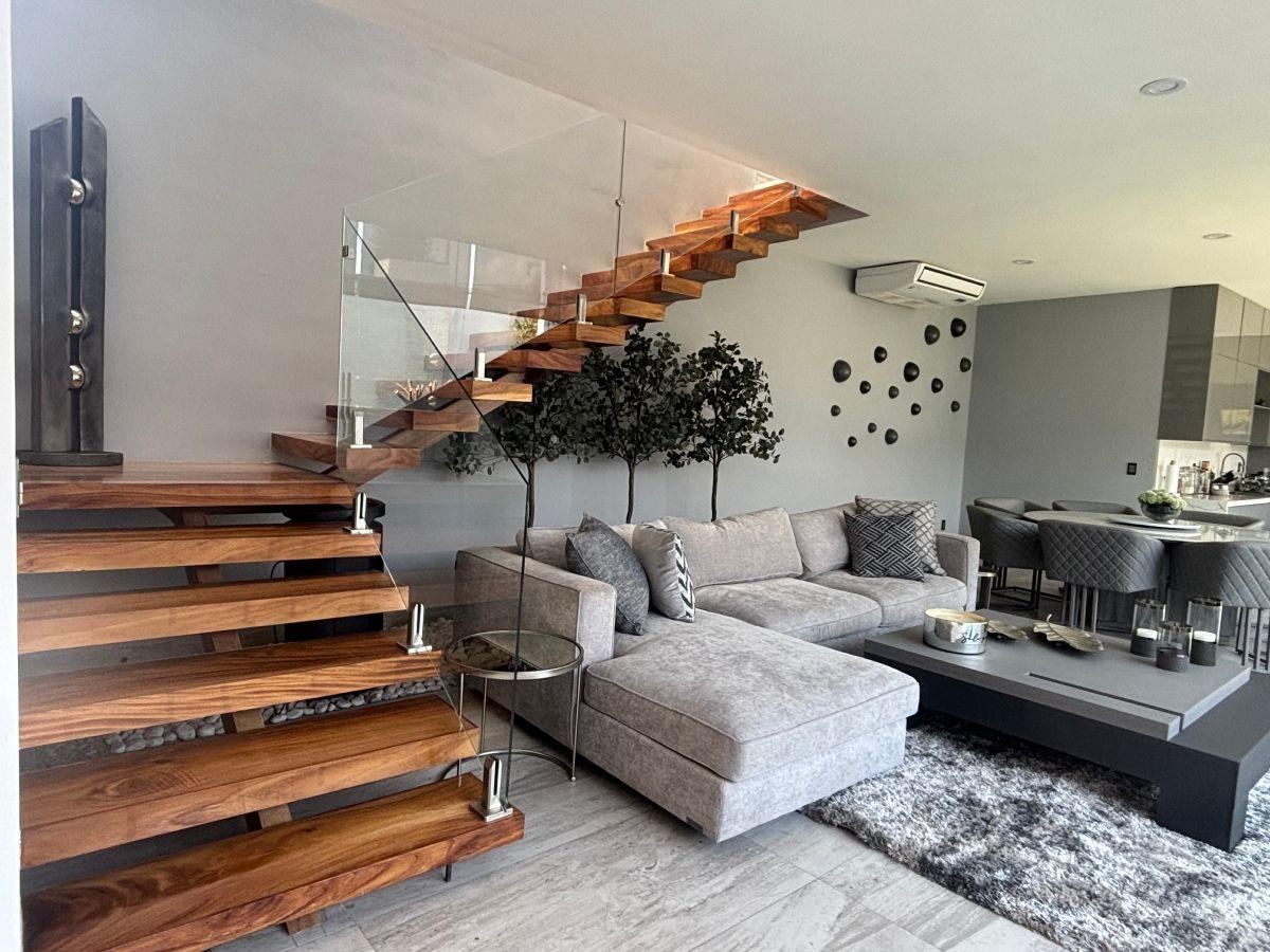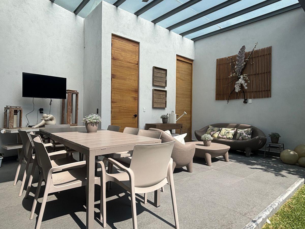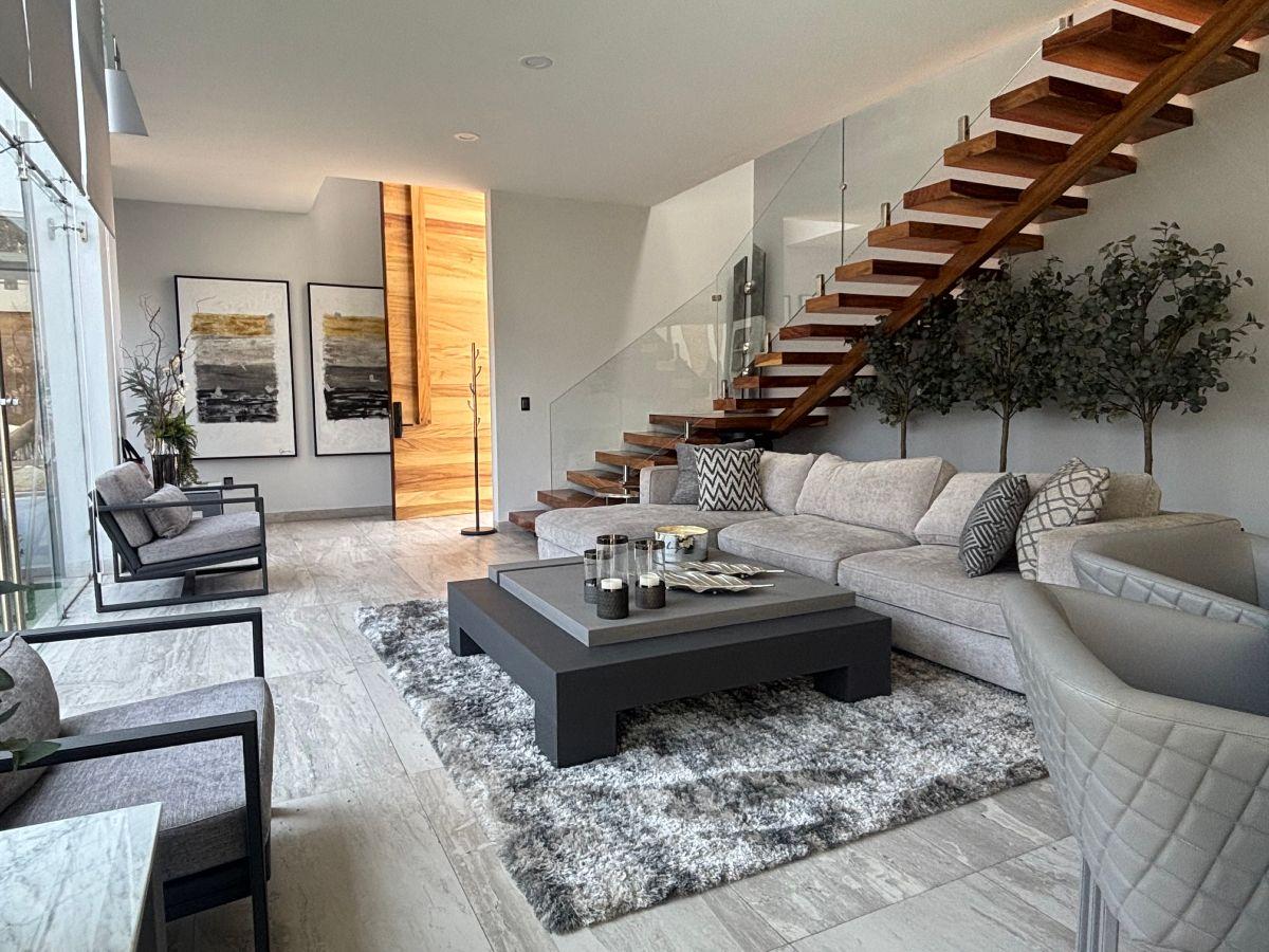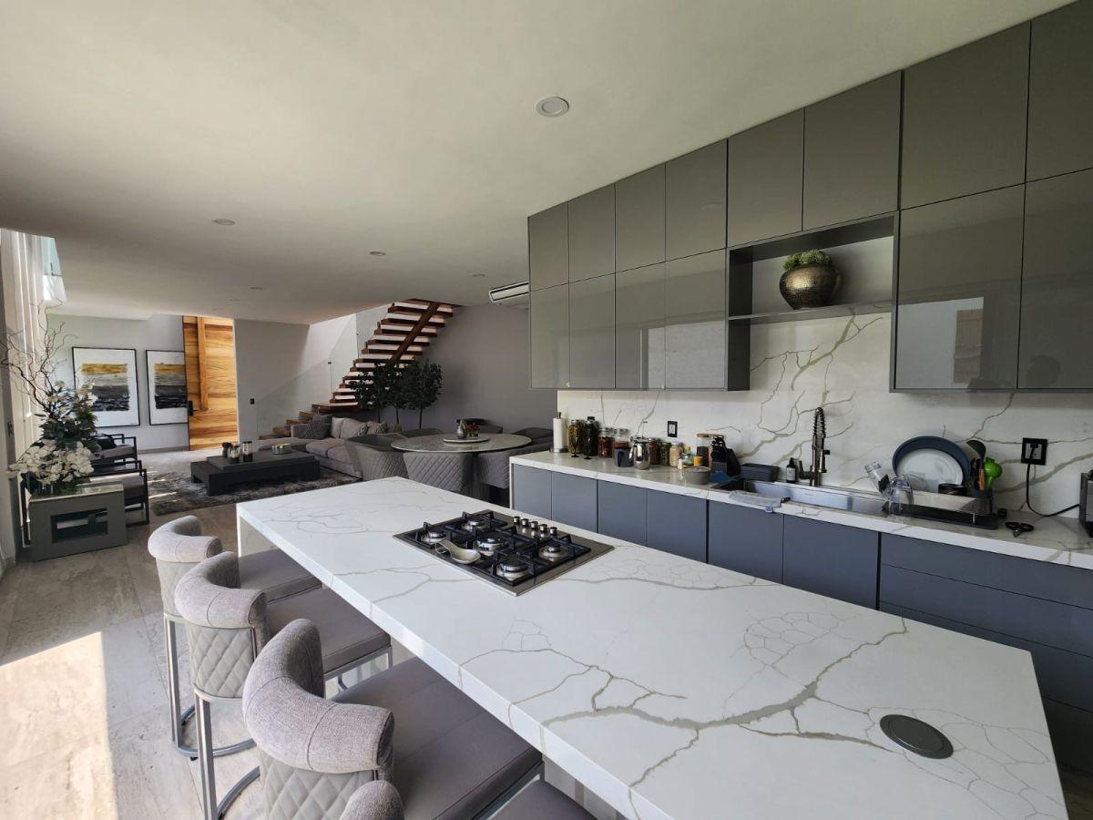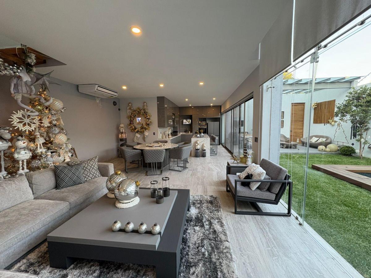 Puerta de Teca de doble altura, amplio vestíbulo con mármol, ventanales con vista al jardin, Alberca climatizada con cascada, Cocina equipada con isla de mármol. Recámara en planta baja, con baño completo y clóset. Recámaras en planta alta con walking closet y baños de lujo. Recámara principal con terraza, riego por aspersion, cisterna 16000 litros, aire acondicionado en recamaras y sala comedor, cerca electrificada, camaras de seguridad,