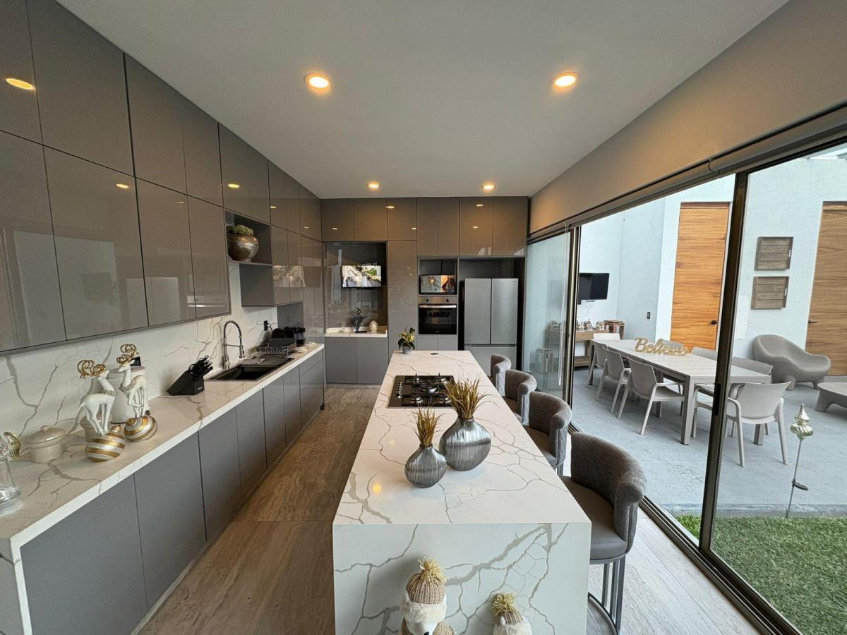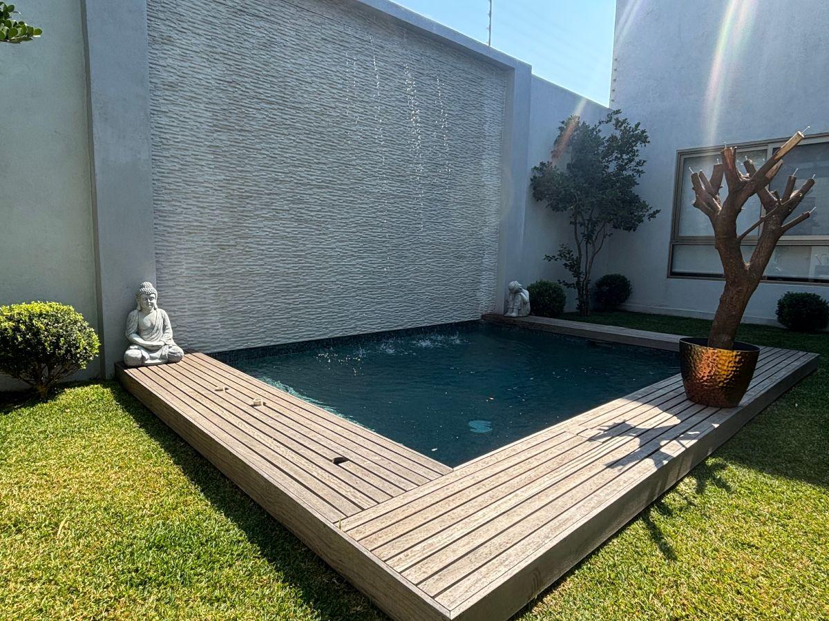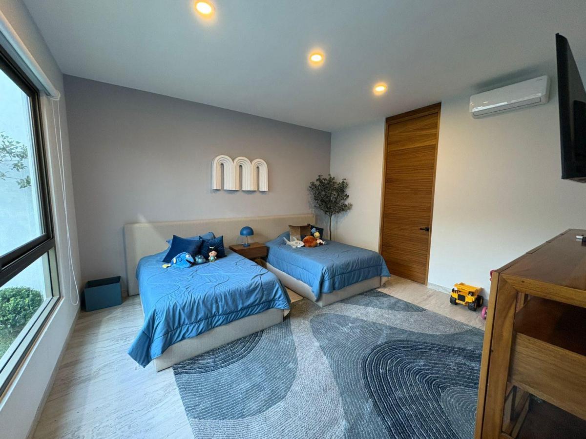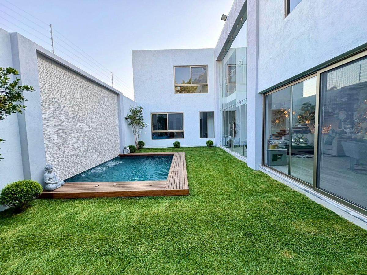 Puerta de Teca de doble altura, amplio vestíbulo con mármol, ventanales con vista al jardin, Alberca climatizada con cascada, Cocina equipada con isla de mármol. Recámara en planta baja, con baño completo y clóset. Recámaras en planta alta con walking closet y baños de lujo. Recámara principal con terraza, riego por aspersion, cisterna 16000 litros, aire acondicionado en recamaras y sala comedor, cerca electrificada, camaras de seguridad,