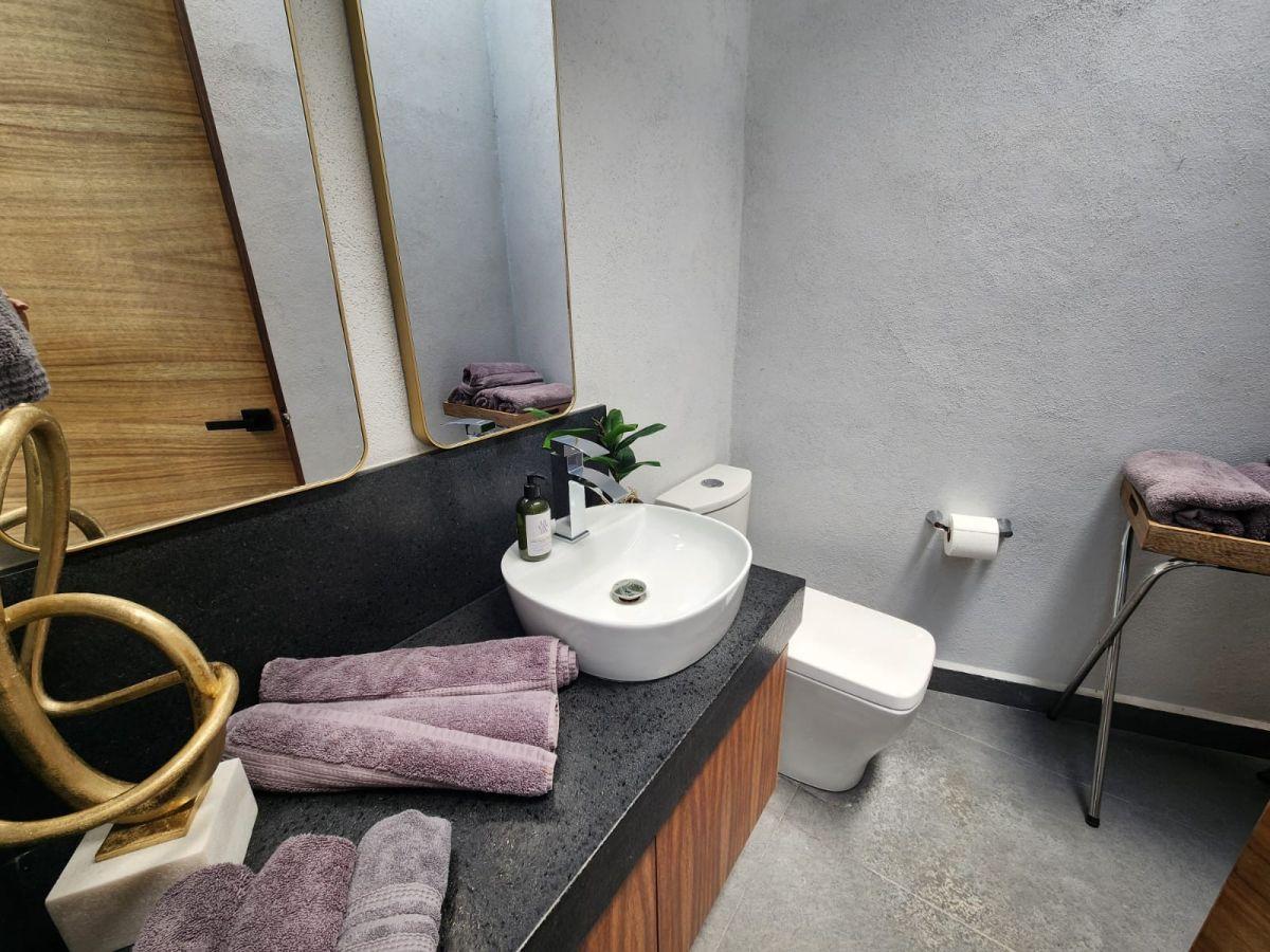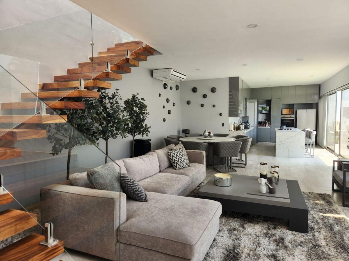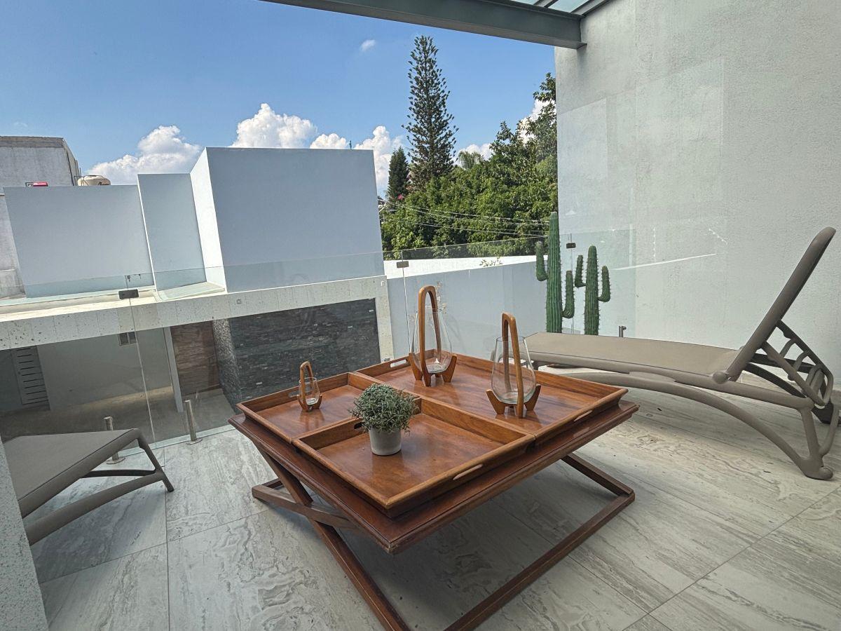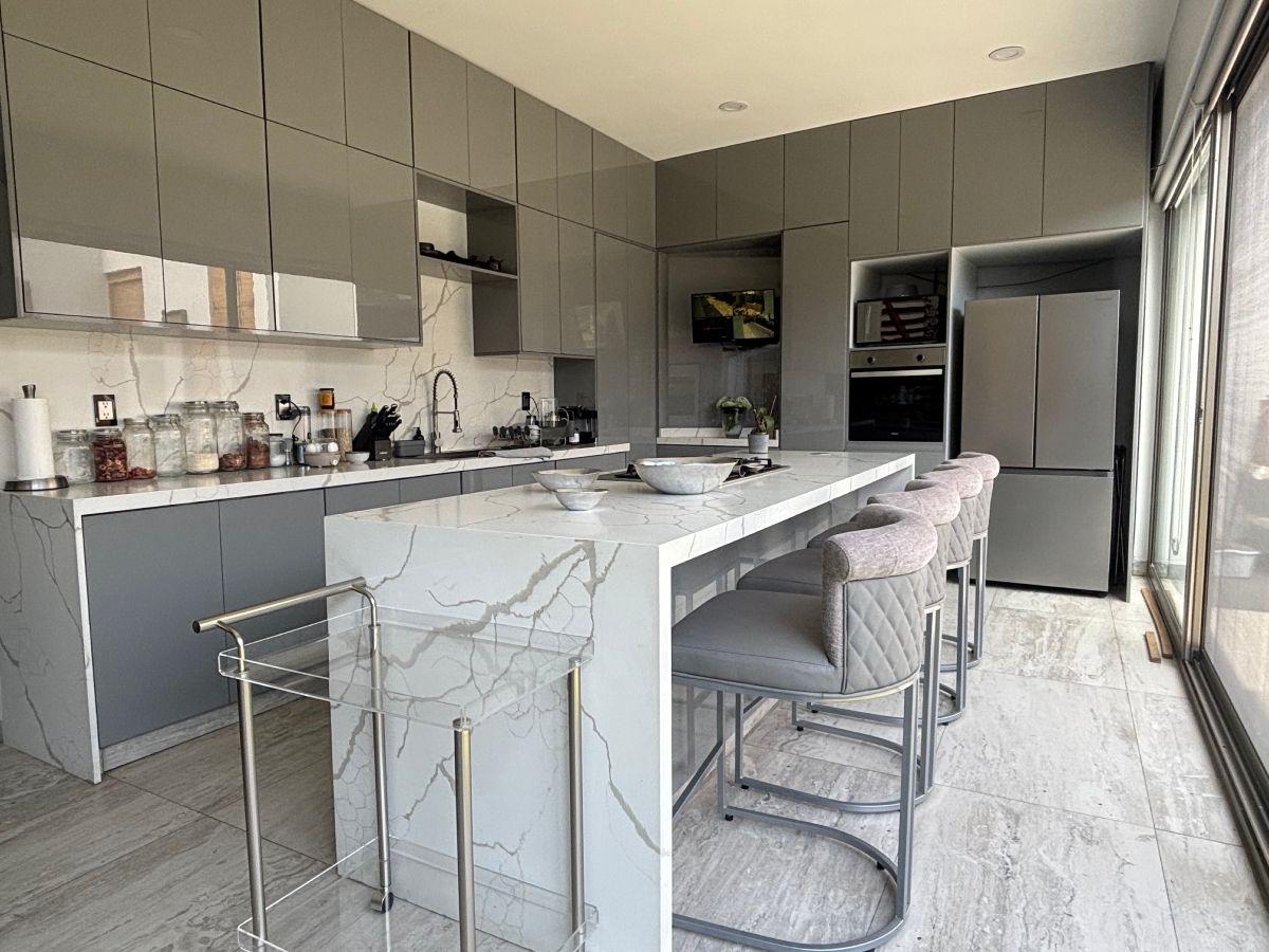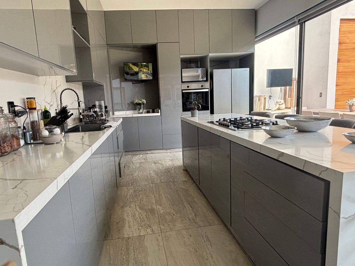 Puerta de Teca de doble altura, amplio vestíbulo con mármol, ventanales con vista al jardin, Alberca climatizada con cascada, Cocina equipada con isla de mármol. Recámara en planta baja, con baño completo y clóset. Recámaras en planta alta con walking closet y baños de lujo. Recámara principal con terraza, riego por aspersion, cisterna 16000 litros, aire acondicionado en recamaras y sala comedor, cerca electrificada, camaras de seguridad,