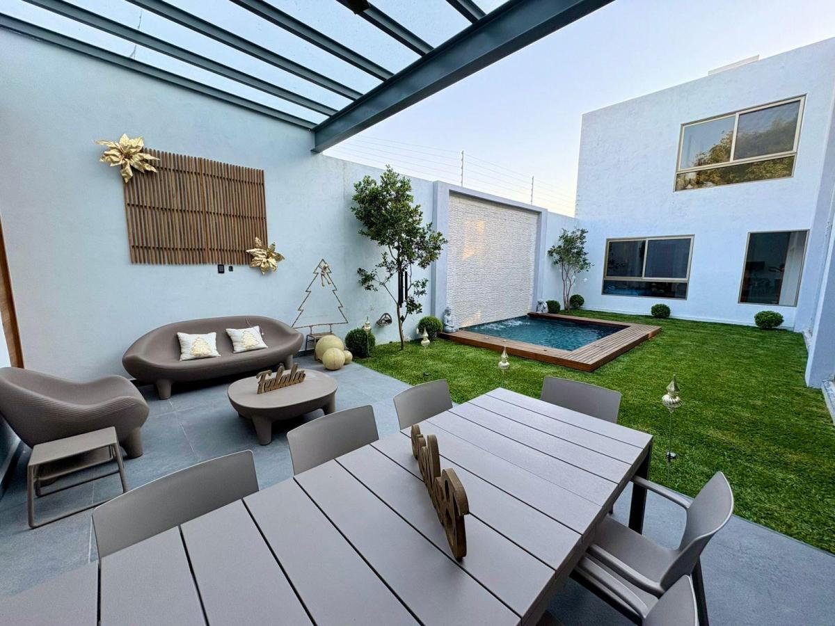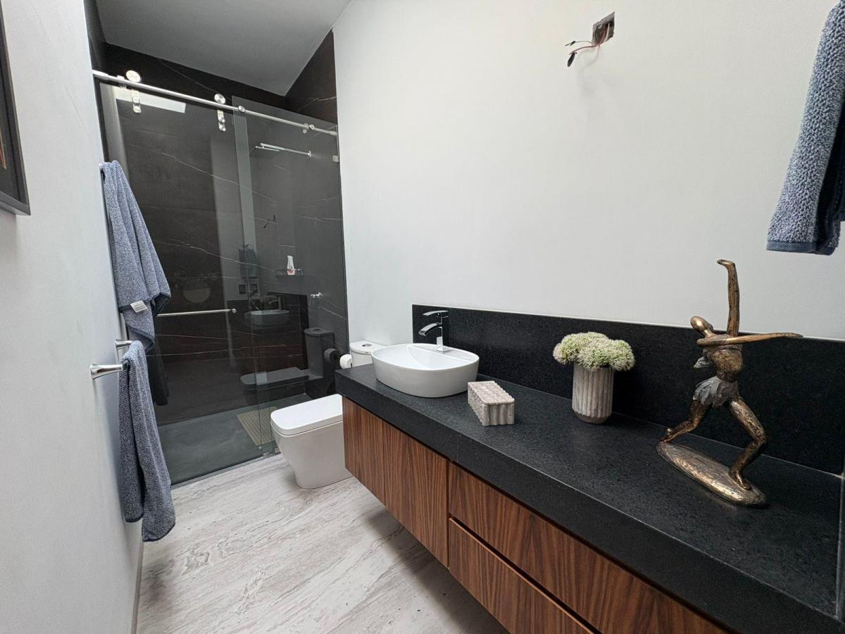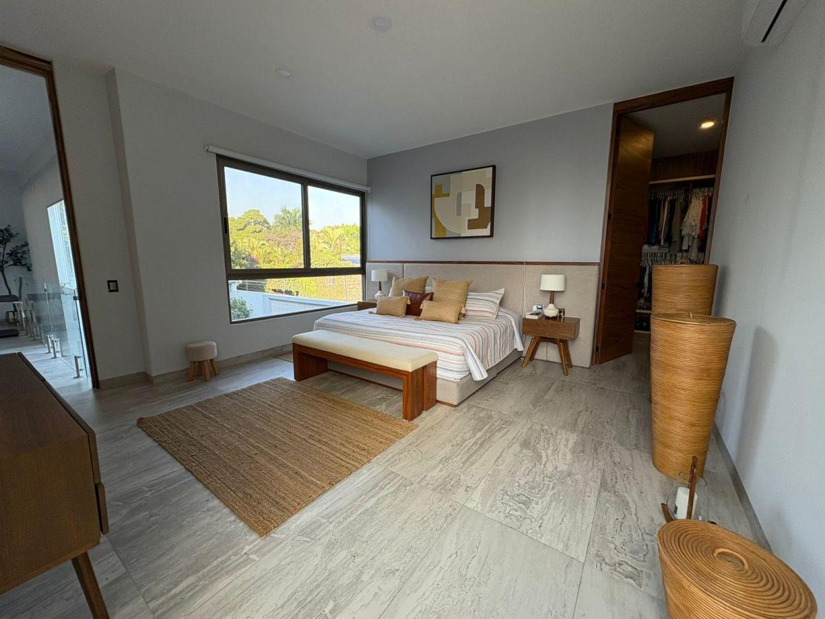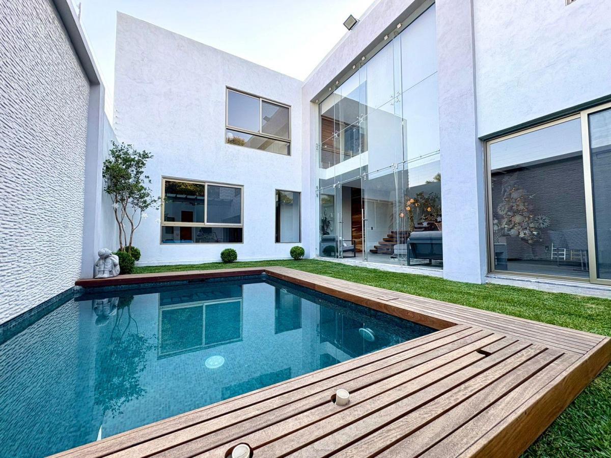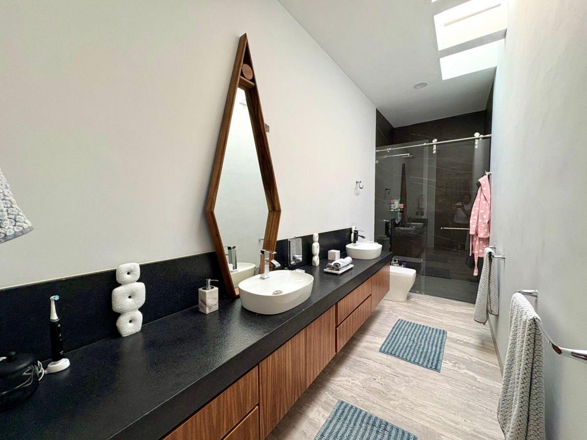 Puerta de Teca de doble altura, amplio vestíbulo con mármol, ventanales con vista al jardin, Alberca climatizada con cascada, Cocina equipada con isla de mármol. Recámara en planta baja, con baño completo y clóset. Recámaras en planta alta con walking closet y baños de lujo. Recámara principal con terraza, riego por aspersion, cisterna 16000 litros, aire acondicionado en recamaras y sala comedor, cerca electrificada, camaras de seguridad,